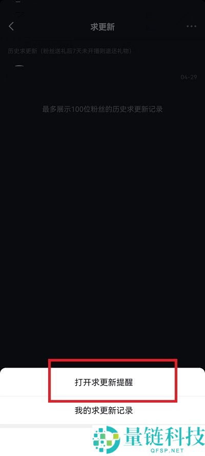 3、最后在两个选项之中,点击其中的【打开求更新提醒】就可以再次回复提醒,让我们接收到来自粉丝和好友的催更新提醒。
