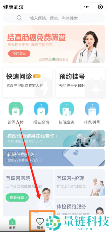 1、首先在微信中搜索“健康武汉官微”小程序进入。