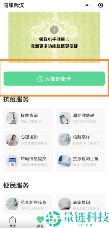 3、跟着在该页面点击上方“添加健康卡”。