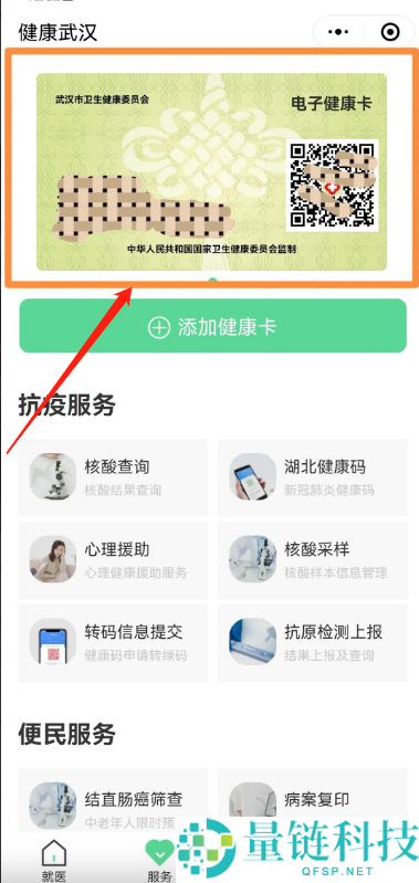 6、领取成功后返回服务页面点击上方电子健康卡进入。