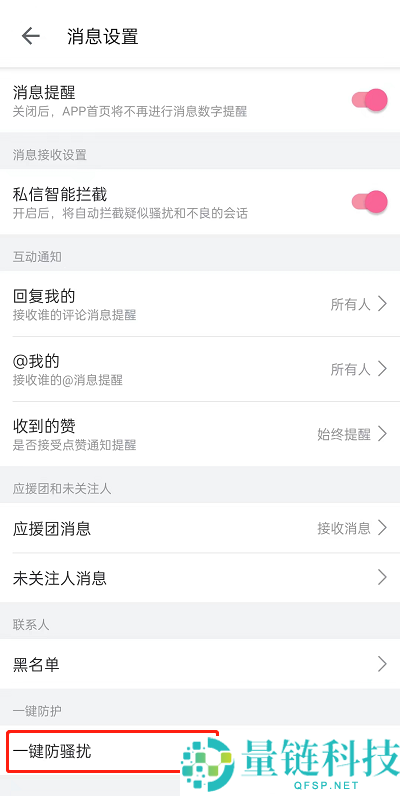 4、最后将一键防骚扰右侧开关开启即可。
