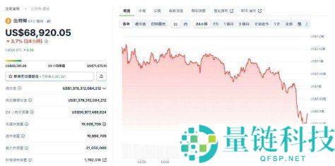 截稿前,根据CoinGecko 数据,比特币24 小时内下跌3.7%,报68,920.05 美元。