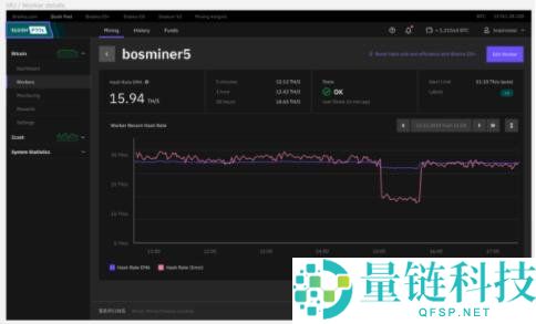 在Braiins Pool仪表盘中,您可以查看您矿机的算力。矿机说明书上标注的算力是名义算力,和Slush Pool仪表盘中的有效算力不同。您需要知道它们的差异。
