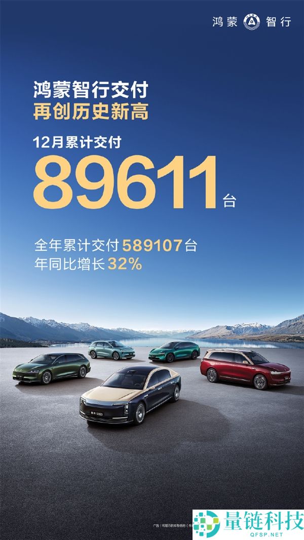 鸿蒙智行12月交付89611台 一连三个月创汗青新高,