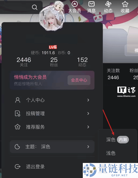 从今年 5 月开始有网友陆续反馈B站网页端悄悄上线了“深色模式”内测,不过当时相应功能仅覆盖少数用户,对于没有看到入口的用户需要手动