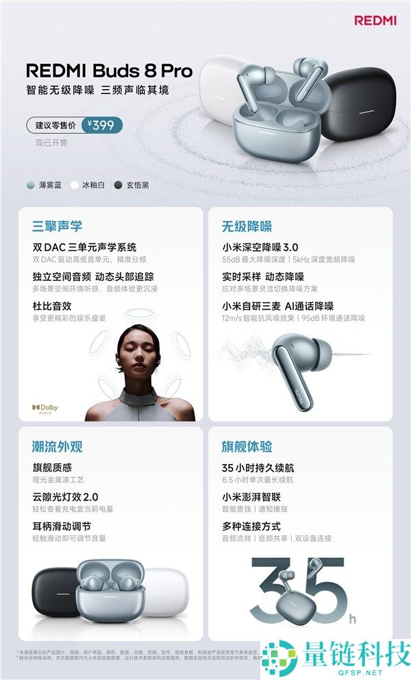 REDMI Buds 8 Pro发布,35小时长久续航 399元