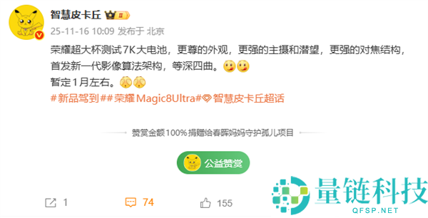 11月16日消息,今日,数码博主智慧皮卡丘”曝光了一款荣耀新旗舰,结合其配置与定位来看,预计为荣耀Magic8 Ultra。该博主透露,荣耀Magic