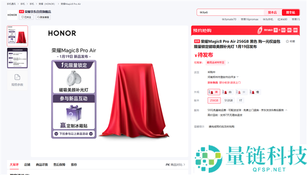 1月8日消息,荣耀Magic8 Pro Air将于1月19日正式发布,目前新机已在荣耀京东自营旗舰店开启预约。预约页面显示,荣耀Magic8 Pro Air拥