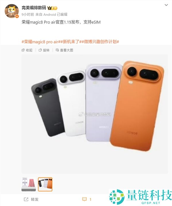光荣Magic8 Pro Air上架预定,四款配色 顶配1TB存储