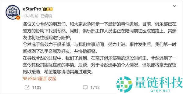 21岁电竞选手凌晨发遗书 俱乐部回应:人已找到
