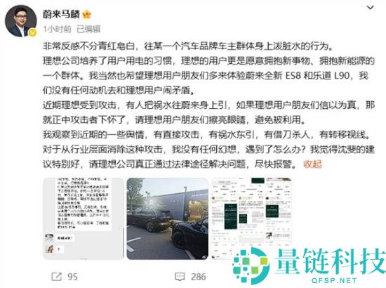 8月7日消息,蔚来助理副总裁,品牌、传播与营销负责人马麟微博上公开发声,强烈反对向某一个汽车品牌车主群体“泼脏水”的行为。他称赞理想