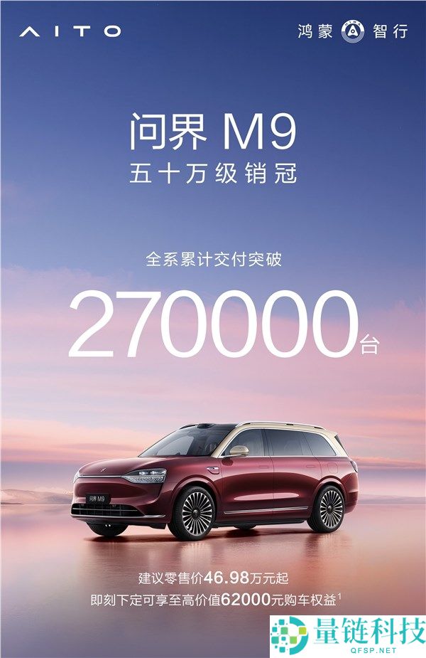 50万以上市场每卖10辆它独有7辆,问界M9累计交付27万辆