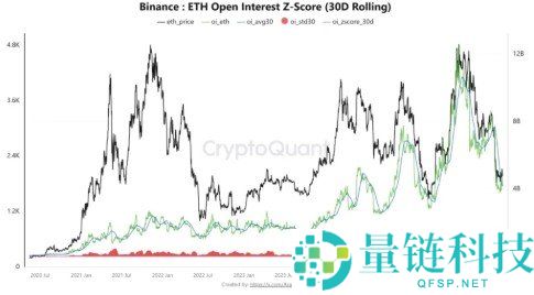 根据币安ETH 未平仓合约30 天Z-Score 数据表现,近几个月来ETH 衍生品市场的结构发生了显著变化,最新数据显示,币安上以太坊合约的总