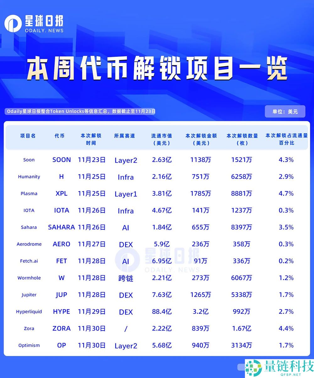 一周代币解锁:HYPE解锁近千万枚,价值超3亿美元