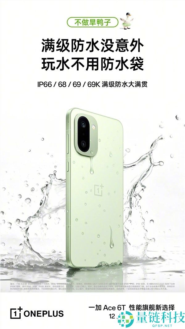 11月28日消息,一加Ace 6T今天预热了防护配置,实现了IP66 68 69 69K的满级防水。不仅可以防溅水、泡水,甚至连高压和水蒸气都能防护,官