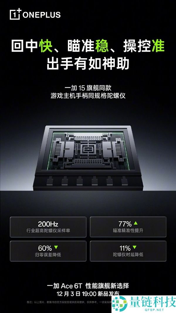 11月30日消息,今日,一加手机宣布,一加Ace6T将搭载一加15旗舰同款陀螺仪,并且还是游戏主机手柄同系、同规格陀螺仪,宣称指哪打哪,人枪