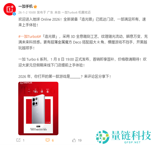 一加Turbo 6系列样机已到店展出:1月8日发布 首发就支撑国补