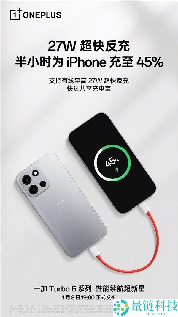 一加Turbo 6搭载9000mAh巨量电池,支撑27W反冲,半小时充iPhone 45%