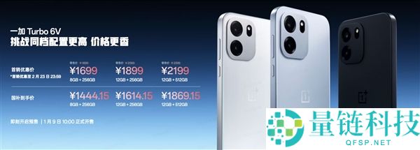 1月8日消息,今日晚间,一加Turbo 6V正式发布,提供无畏蓝、新星白和独行黑三种配色,具体售价如下:8GB 256GB首销优惠价1699元,国补到