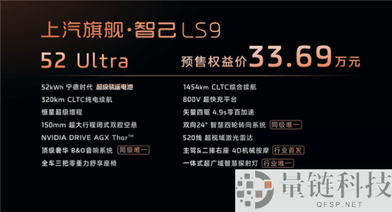 上汽智己LS9预售,共推出两款车型,权益价33 69-36 69万元,同时官方还公布了预售权益。和在售的智己系列车型不同,LS9采用全新的设计语言