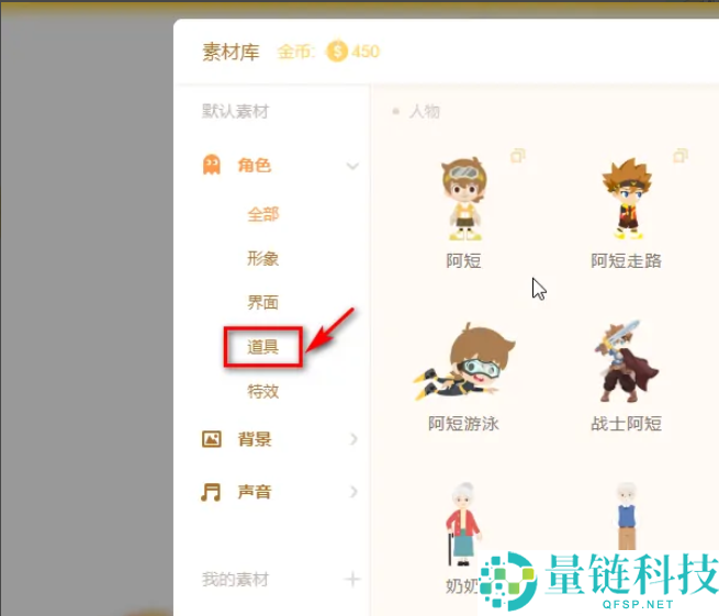 3、点击左侧的道具菜单。