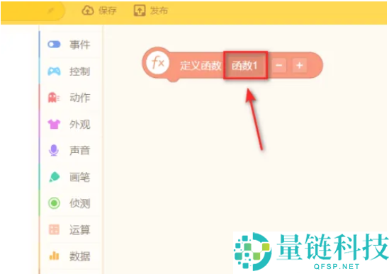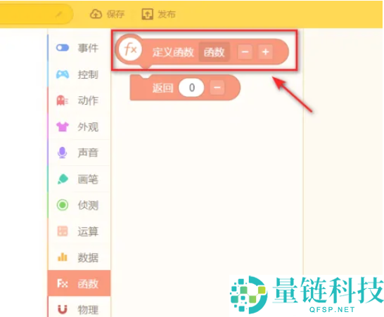3、点击定义函数积木块。
