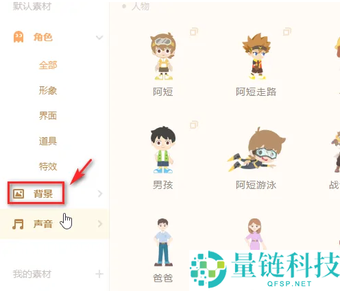 2、选中背景这个角色。