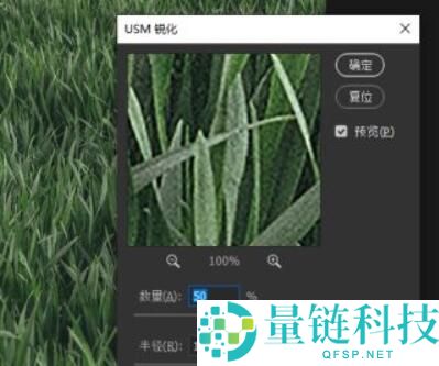 6、根据你的照片情况调节一下锐化数量并点击“确定”即可。