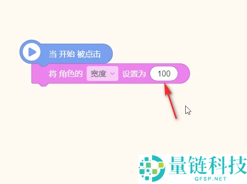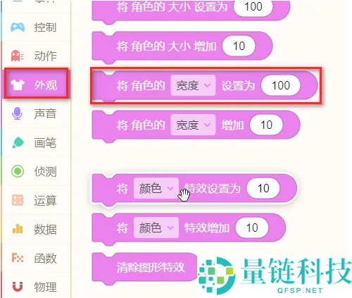 4、点击“外观”-》“将角色的宽度设置为100”。
