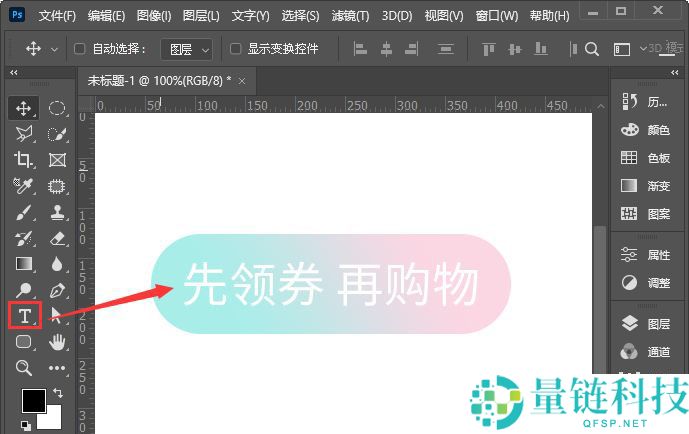 5、下一步,我们用【文字工具】在渐变颜色的圆角矩形上面输入需要的文字,图所示。