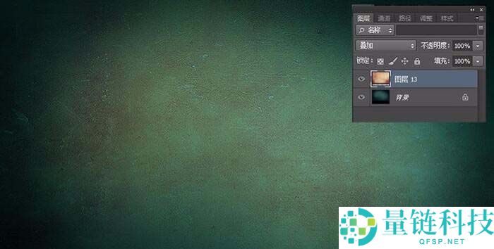 2、然后找一个纹理贴图,用叠加的模式盖在背景上面(操作:纹理背景自己百度一个就行,拖到背景图上面,然后修改图层模式为叠加),呈现出一种斑驳的感觉,叠加混合模式有个独一无二的好处,就是保留混合前的纹理,大家可以经常试一试;