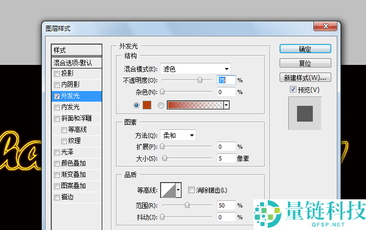 11、最后,“图层”——“图层样式”——“混合选项”,在弹出的“图层样式”中设置外发光;