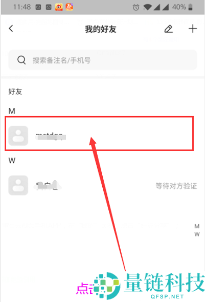 3、在我的好友列表页面,点击要删除的好友;