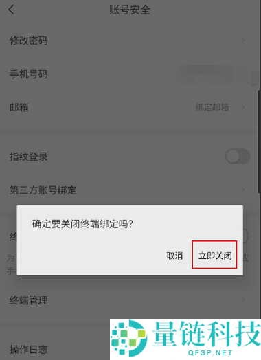 5、弹出窗口点击立即关闭即可关闭终端绑定。