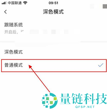 4、进入深色模式页面之后,然后点击勾选【普通模式】即可完成。