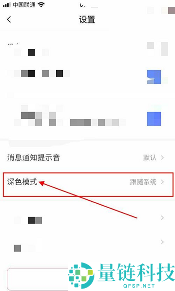 3、进入设置页面,再点击【深色模式】。