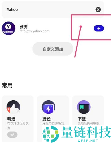 4、点击输入网址或网站名,添加首页导航,看到雅虎(输入Yahoo,雅虎网站),看到【+】。