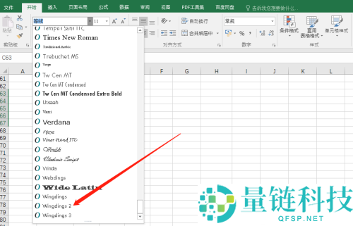 2、在字体列表中选择wingdings2。