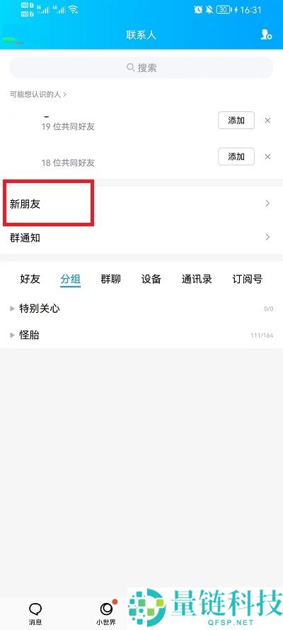2、然后点击新朋友。