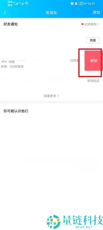 3、最后选择需要删除的好友申请记录,向左滑动,点击删除即可。