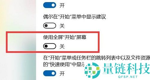 4、找到下面的“使用全屏开始屏幕”将开关打开。
