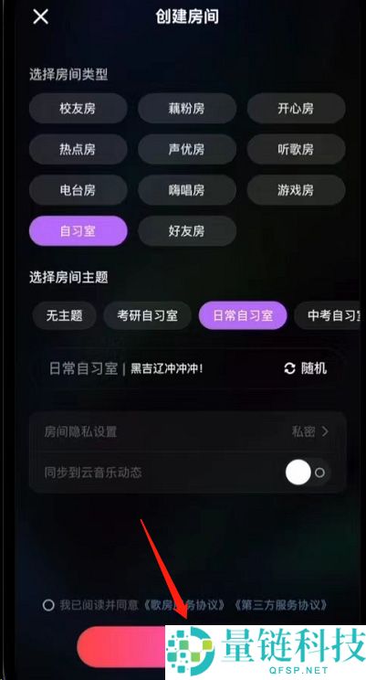 4、最后选择房间类型、主题等,点击创建即可。
