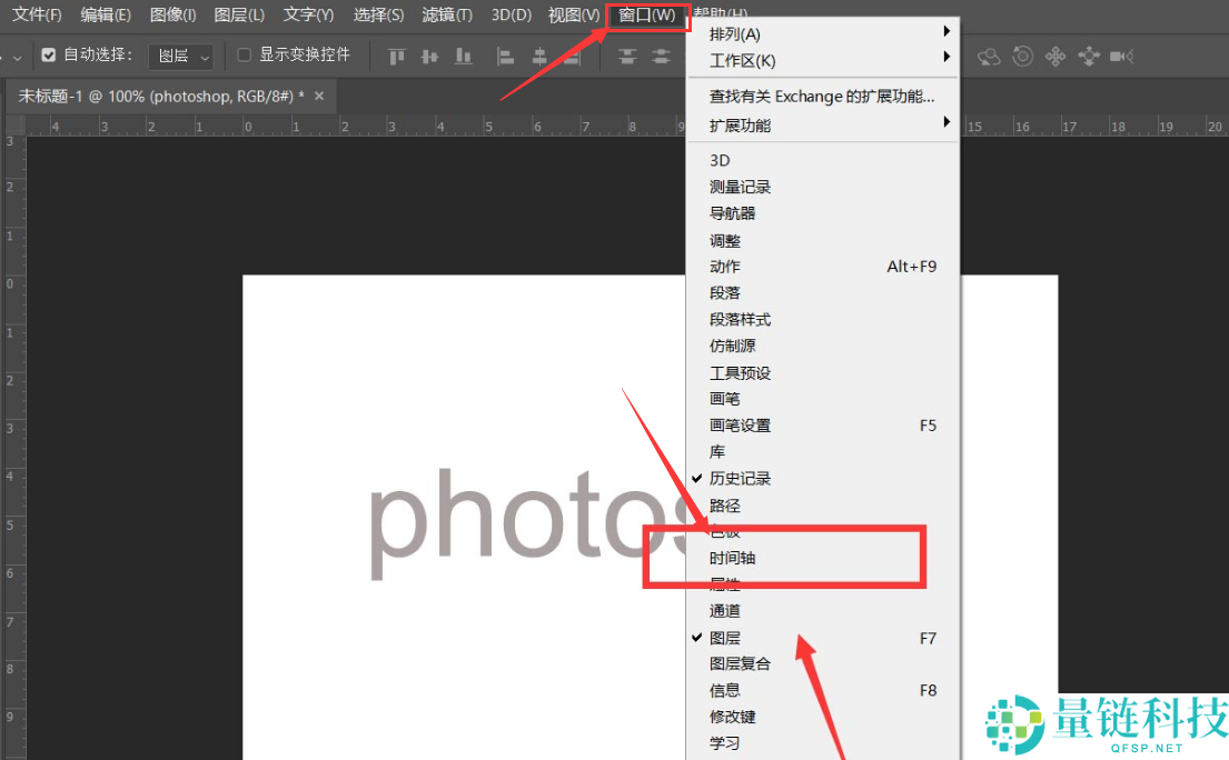 2.然后点击窗口菜单中的时间轴按钮,创建时间轴;