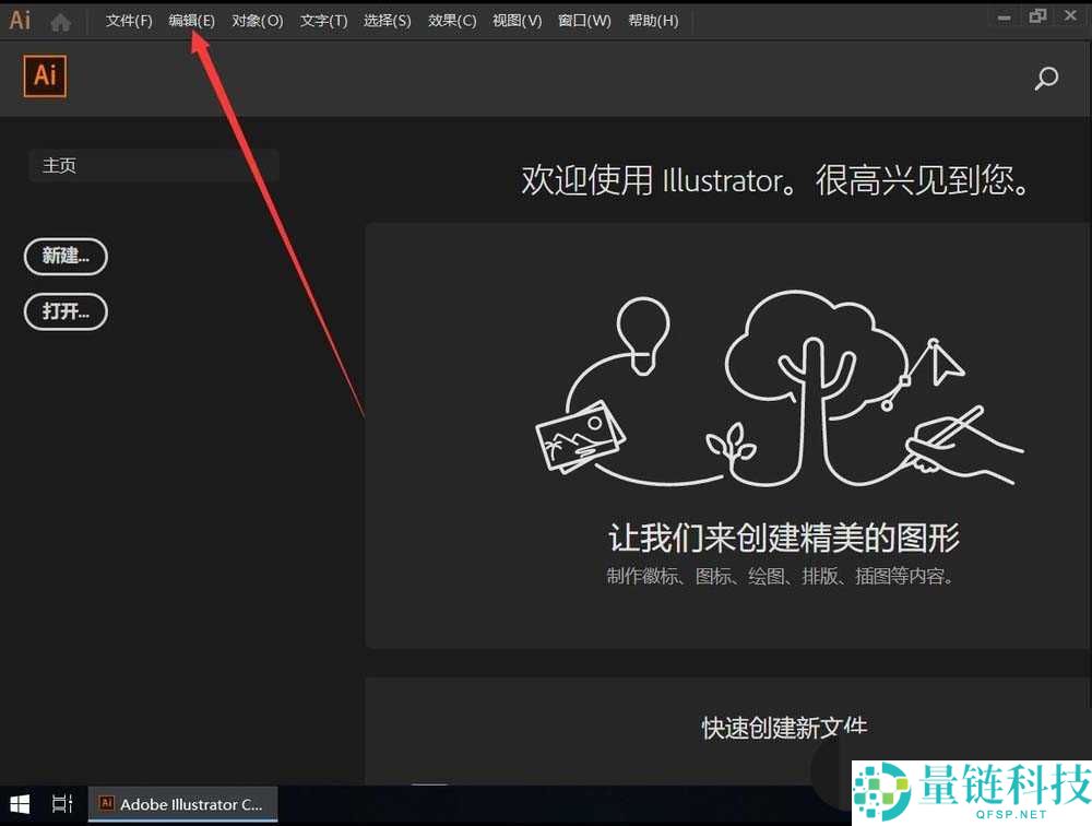 3、打开Ai后,点击软件顶部工具栏上的“编辑”;