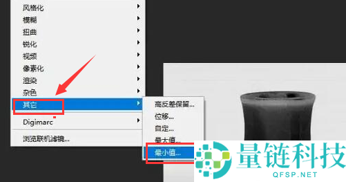 4.然后在滤镜菜单的其他版块中,点击最小值选项;