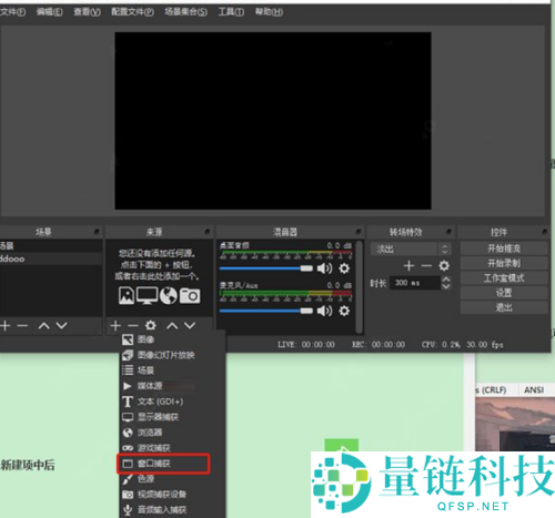4、最后打开列表选项中选择来源的类型。比如在这想录制窗口所以选择窗口捕获选项。