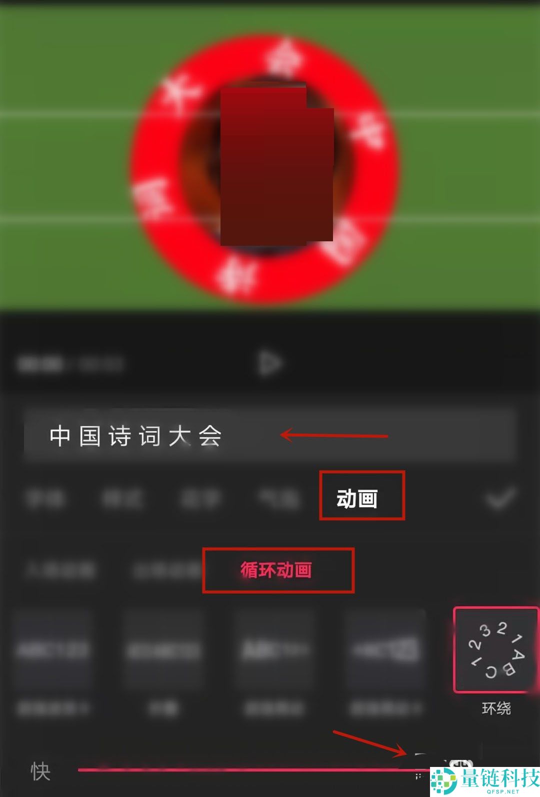6、最后点击文字-新建文本,输入自己的文字,并在动画-循环动画里选择环绕即可;