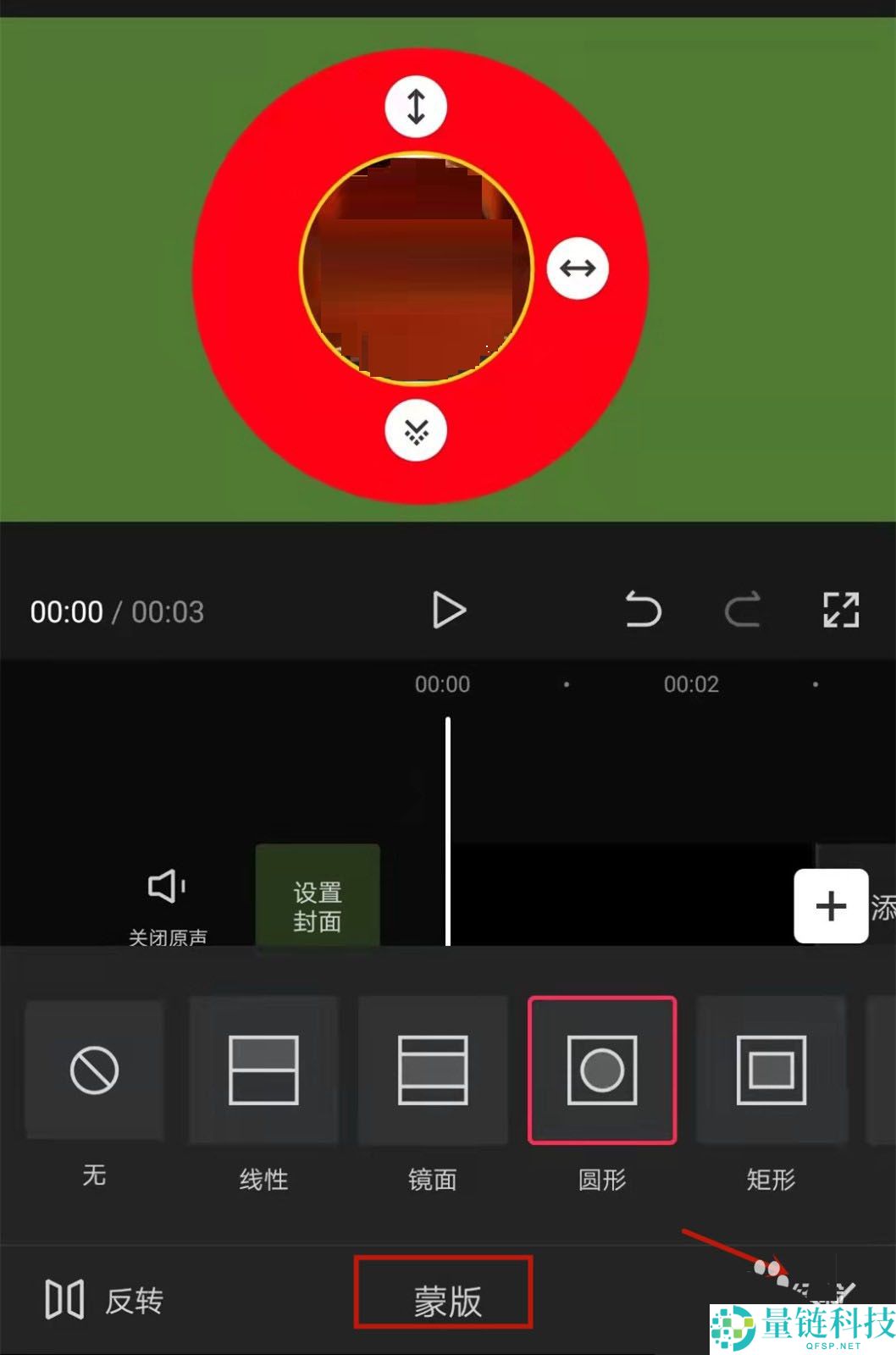 4、点击下方的蒙版,选择圆形蒙版应用;