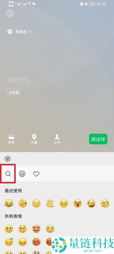 4、选择表情界面中,点击旁边的【放大镜】进入到表情搜索中;