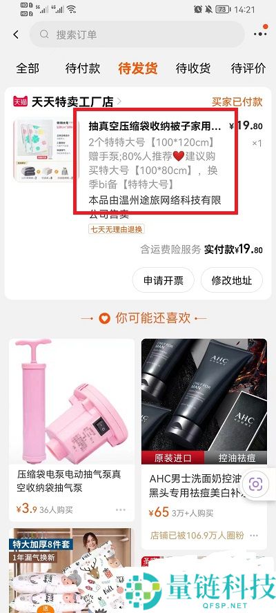 3、在待发货的功能中,点击想要退款的商品,进入到商品详情界面中;